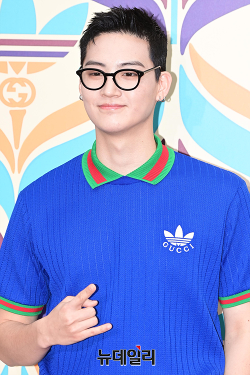 아이돌그룹 갓세븐 멤버 제이비가 7일 오후 서울 강남구 꼴라보하우스도산에서 열린 구찌X아디다스 런칭 기념 행사에서 포즈를 취하고 있다.