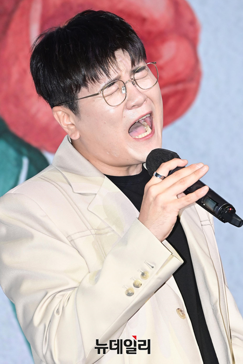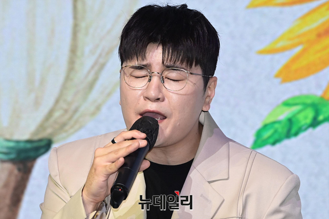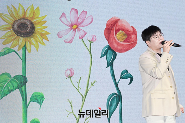 보컬 듀오 이프(2F) 신용재가 8일 오후 서울 강남구 슈피겐홀에서 열린 새 미니앨범 '사계' 발매기념 쇼케이스에서 무대를 선보이고 있다.