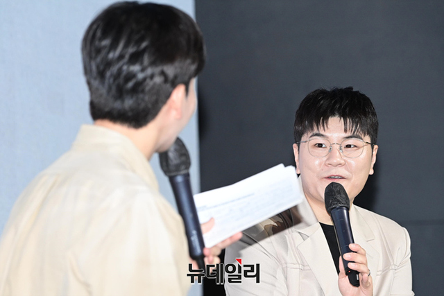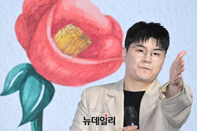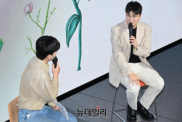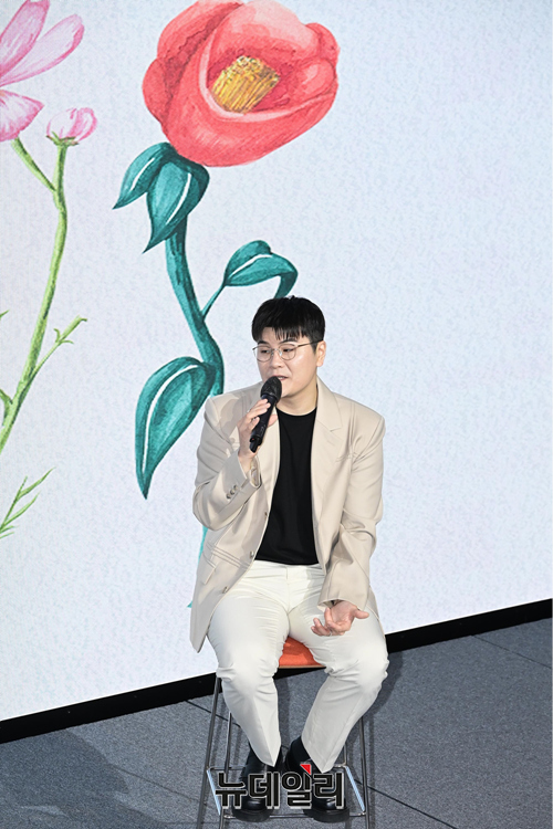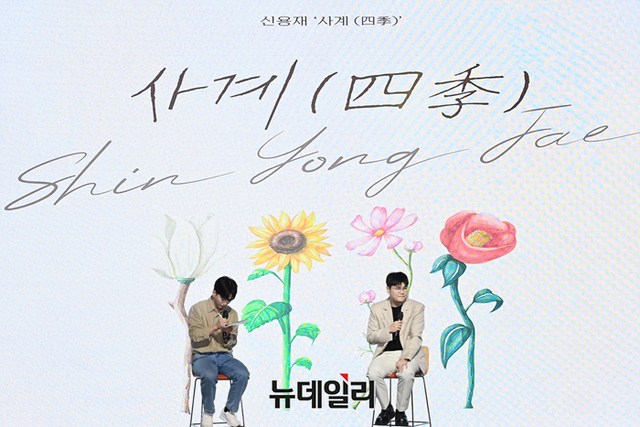 보컬 듀오 이프(2F) 신용재가 8일 오후 서울 강남구 슈피겐홀에서 열린 새 미니앨범 '사계' 발매기념 쇼케이스에서 취재진의 질문을 답하고 있다.