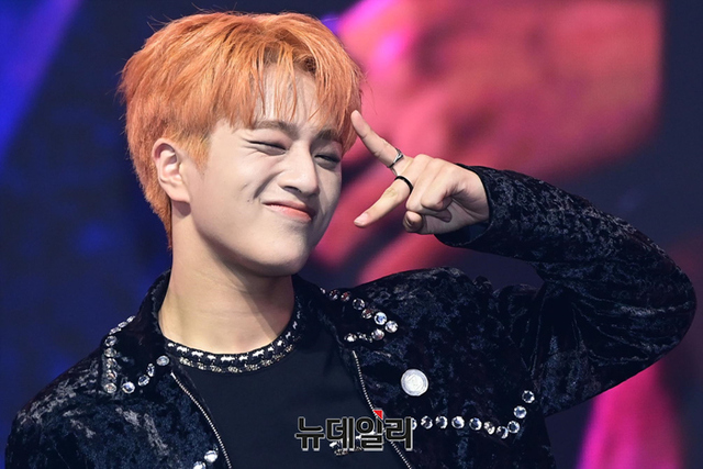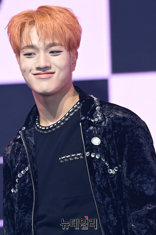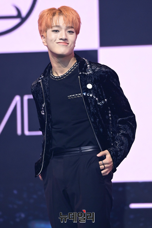 아이돌그룹 트렌드지 멤버 예찬이 8일 오후 두 번째 미니앨범 '블루 셋 챕터 2. 초이스' 발매 기념 쇼케이스에서 포즈를 취하고 있다.