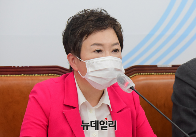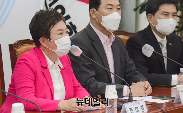 정미경 국민의힘 최고위원이 9일 오전 국회에서 열린 최고위원회의에서 모두발언을 하고 있다.
