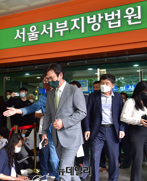 한동훈 법무부 장관의 명예를 훼손한 혐의로 재판에 넘겨진 유시민 전 노무현재단 이사장이 9일 오후 서울 마포구 서울서부지법에서 열린 1심 공판 직후 법원을 나서고 있다. 재판부는 이날 1심 선고 공판에서 유 전 이사장에게 500만원 벌금형을 선고했다.