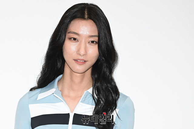 모델 박지혜가 9일 오후 서울 용산구 나일로라 한남 플래그십 스토어에서 열린 포토월에서 포즈를 취하고 있다.
