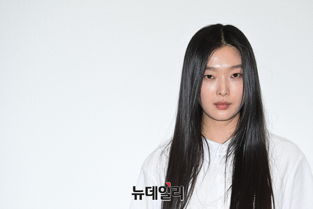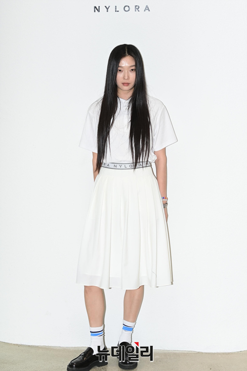 모델 김성희가 9일 오후 서울 용산구 나일로라 한남 플래그십 스토어에서 열린 포토월에서 포즈를 취하고 있다.