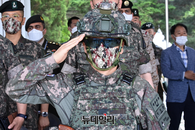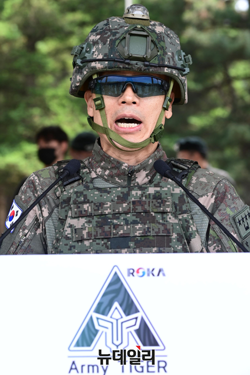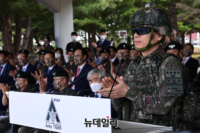 박정환 육군참모총장이 10일 오전 경기 양주시 25사단에서 열린 '아미 타이거 시범여단 전투단 선포식'에서 발언을 하고 있다.