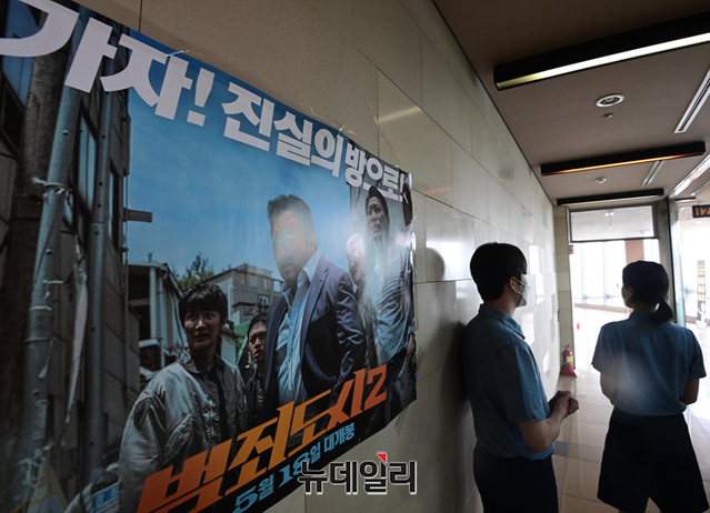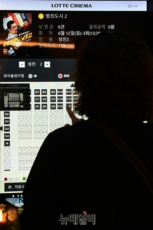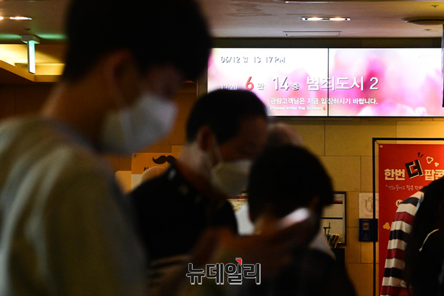 코로나19 이후 처음으로 천만 관객을 기록한 영화 '범죄도시2(감독 이상용)'을 찾은 관람객들이 12일 오후 서울 관악구 한 영화관에서 영화표를 구매하고 있다.