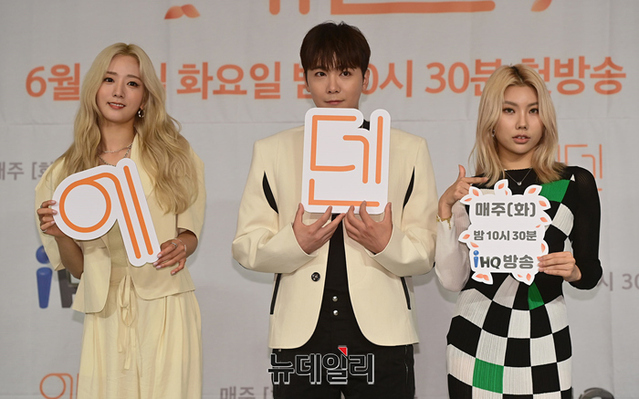 MC를 맡은 윤보미(왼쪽부터), 이홍기, 시미즈가 13일 오후 서울 마포구 서울가든호텔에서 열린 IHQ 새 연애 리얼리티 '에덴' 제작발표회에서 포토타임을 갖고 있다.에덴은 셀렘과 조건 사이에서 사랑을 찾는 일반인 남녀 8명의 연애 리얼리티 프로그램. '에덴하우스'를 배경으로 본능적으로 끌리는 상대방의 조건을 하나씩 추리해가며 진정한 사랑을 찾는다. 이홍기, 윤보미, 시미즈가 MC를 맡아 14일 밤 10시 30분 채널 IHQ와 OTT 웨이브에서 첫 공개 된다.