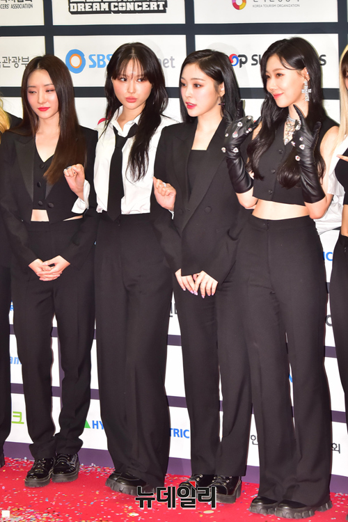 걸그룹 드림캐쳐 18일 오후 서울 송파구 잠실종합운동장에서 열린 2022 드림콘서트 레드카펫에서 포즈를 취하고 있다.