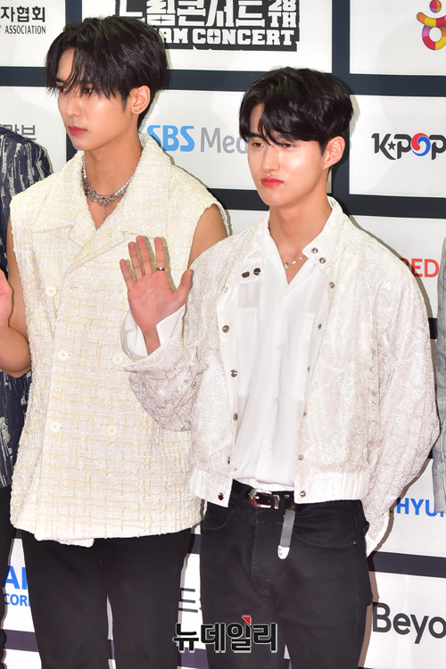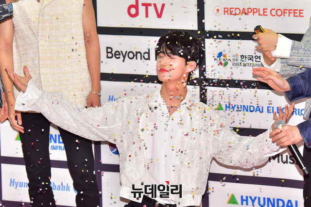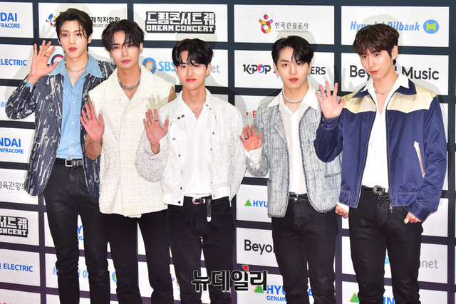 아이돌그룹 펜타곤이 18일 오후 서울 송파구 잠실종합운동장에서 열린 2022 드림콘서트 레드카펫에서 포즈를 취하고 있다.
