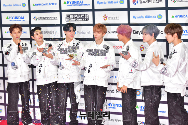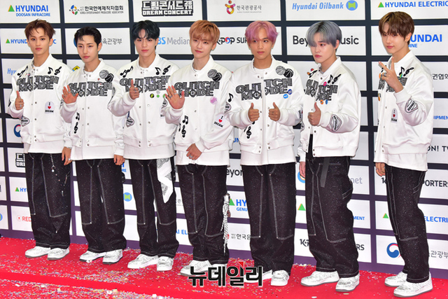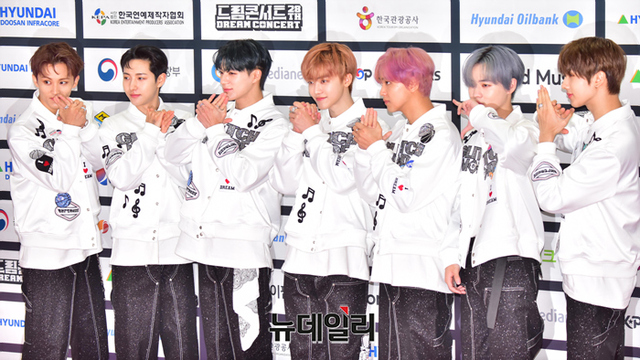 아이돌그룹 엔시티 드림이 18일 오후 서울 송파구 잠실종합운동장에서 열린 2022 드림콘서트 레드카펫에서 포즈를 취하고 있다.