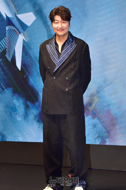 배우 송강호가 20일 오전 서울 중구 웨스틴조선 호텔에서 열린 영화 '비상선언(감독 한재림)' 제작보고회에서 포즈를 취하고 있다.