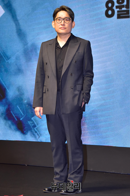 감독 한재림이 20일 오전 서울 중구 웨스틴조선 호텔에서 열린 영화 '비상선언' 제작보고회에서 포즈를 취하고 있다.
