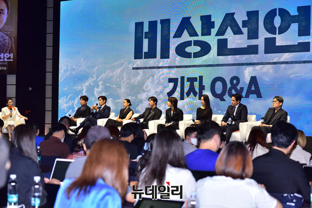영화 '비상선언(감독 한재림)' 제작보고회가 20일 오전 서울 중구 웨스틴조선 호텔 그랜드볼룸에서 열리고 있다.