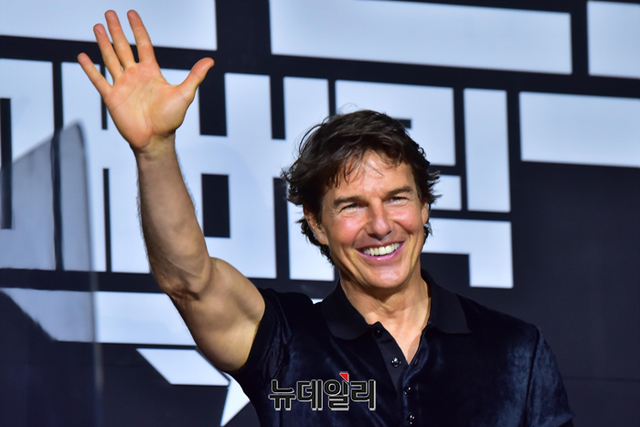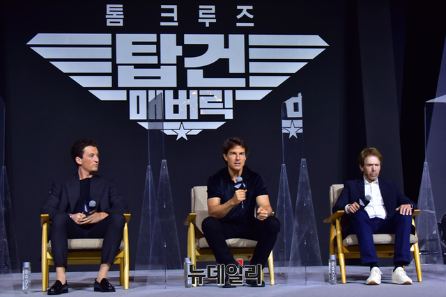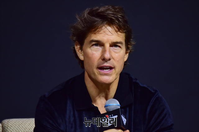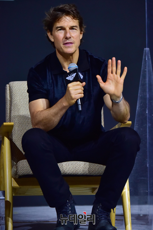 할리우드 배우 '톰 크루즈'가 20일 오후 서울 송파구 롯데호텔월드 그랜드볼룸에서 열린 영화 '탑건:매버릭(감독 조셉 코신스키)' 내한 기자회견에서 질문에 답하고 있다.
