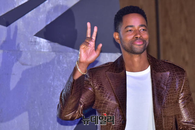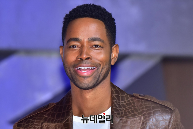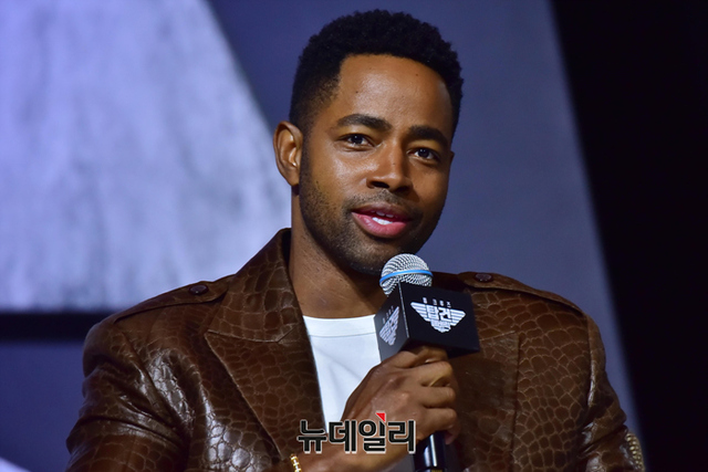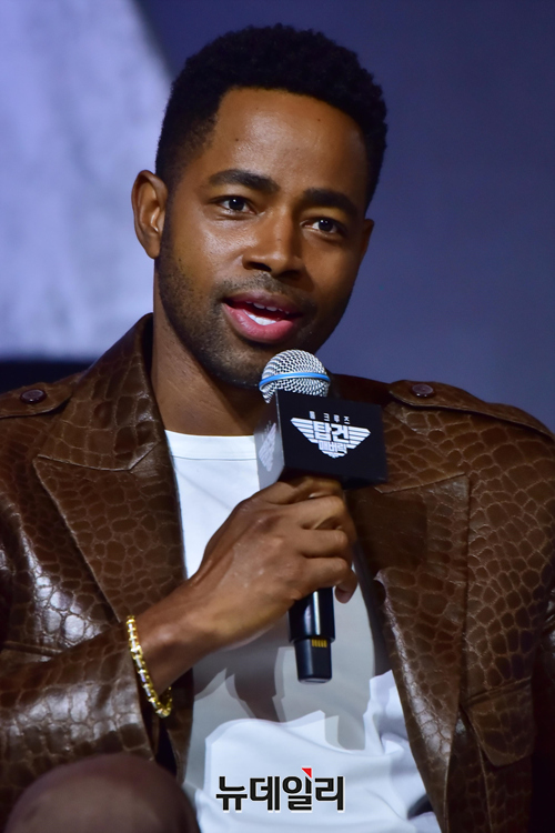 할리우드 배우 '제이 엘리스'가 20일 오후 서울 송파구 롯데호텔월드 그랜드볼룸에서 열린 영화 '탑건:매버릭(감독 조셉 코신스키)' 내한 기자회견에서 질문을 듣고 미소를 짓고 있다.