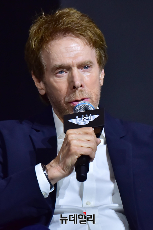 프로듀서 '제리 브룩하이머'가 20일 오후 서울 송파구 롯데호텔월드에서 열린 영화 '탑건:매버릭(감독 조셉 코신스키)' 내한 기자회견에서 취재진의 질문에 답하고 있다.