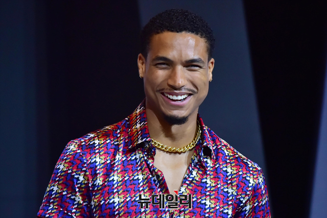 할리우드 배우 '그렉 타잔 데이비스'가 20일 오후 서울 송파구 롯데호텔월드에서 열린 영화 '탑건:매버릭(감독 조셉 코신스키)' 내한 기자회견에서 포즈를 취하고 있다.