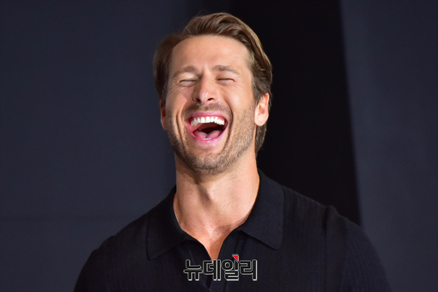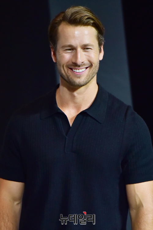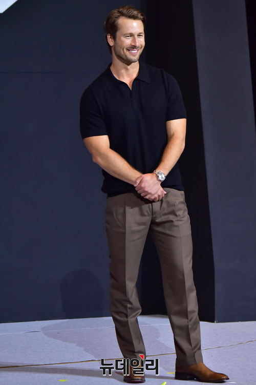 할리우드 배우 '글렌 포웰'이 20일 오후 서울 송파구 롯데호텔월드 그랜드볼룸에서 열린 영화 '탑건:매버릭(감독 조셉 코신스키)' 내한 기자회견에서 포즈를 취하고 있다.