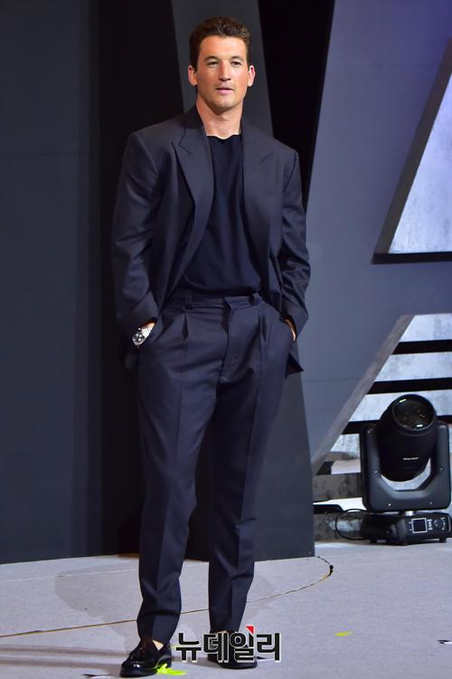 할리우드 배우 '마일즈 텔러'가 20일 오후 서울 송파구 롯데호텔월드 그랜드볼룸에서 열린 영화 '탑건:매버릭(감독 조셉 코신스키)' 내한 기자회견에서 포즈를 취하고 있다.
