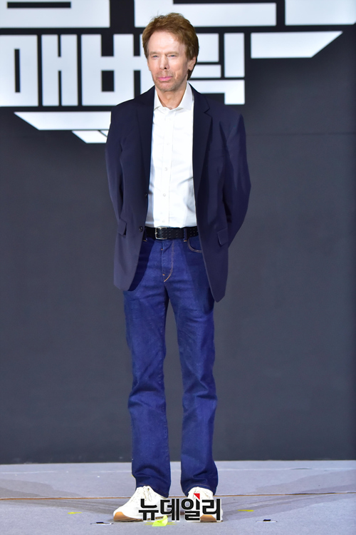 프로듀서 '제리 브룩하이머'가 20일 오후 서울 송파구 롯데호텔월드 그랜드볼룸에서 열린 영화 '탑건:매버릭(감독 조셉 코신스키)' 내한 기자회견에서 포즈를 취하고 있다.