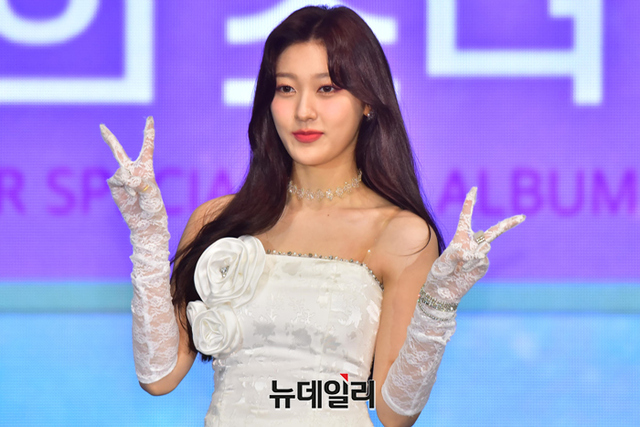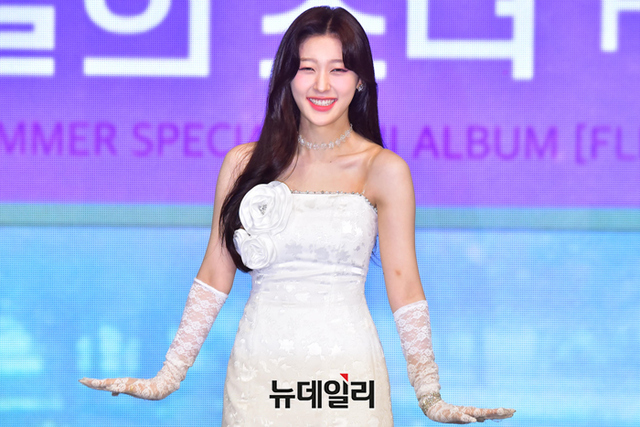 걸그룹 이달의소녀 멤버 최리가 20일 오후 서울 강남구 코엑스 오디토리움에서 열린 서머 스페셜 미니앨범 '플립 댓(Flip That)' 발매 기념 쇼케이스에서 포즈를 취하고 있다.