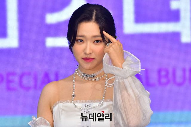 걸그룹 이달의소녀 멤버 올리비아 혜가 20일 오후 서울 강남구 코엑스 오디토리움에서 열린 서머 스페셜 미니앨범 '플립 댓(Flip That)' 발매 기념 쇼케이스에서 포즈를 취하고 있다.