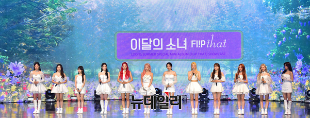 걸그룹 이달의소녀 멤버 현진(왼쪽부터), 비비, 여진, 희진, 이브, 김립, 올리비아 혜, 진솔, 츄, 고원, 하슬, 최리가 20일 오후 서울 강남구 코엑스 오디토리움에서 열린 서머 스페셜 미니앨범 '플립 댓(Flip That)' 발매 기념 쇼케이스에서 무대를 선보이고 있다.앨범과 동명의 타이틀곡 '플립 댓'은 세상을 뒤집겠다는 소녀들의 당찬 포부의 뜻을 담은 앨범으로 '더 저니' '니드 유' '포즈' '페일 블루 도트' '플레이백'까지 총 6곡이 수록됐다. 음원은 오후 6시에 공개.