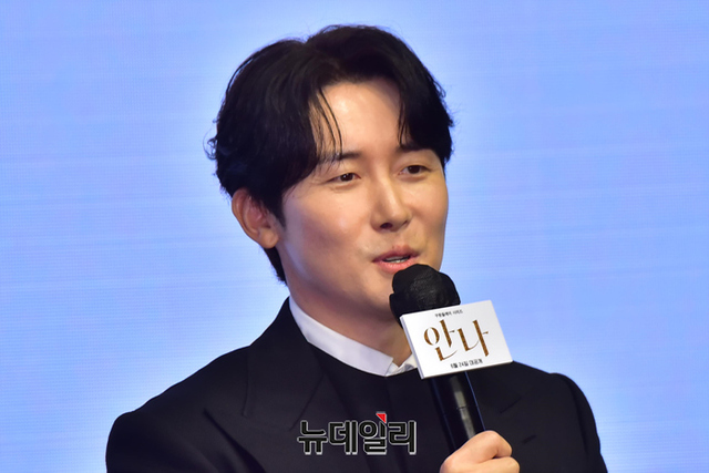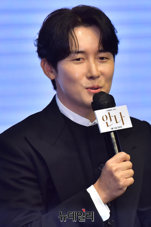 배우 김준한이 21일 오전 서울 여의도 콘래드 서울 호텔에서 열린 쿠팡플레이 시리즈 '안나(감독 이주영)' 제작발표회에 참석해 인사하고 있다.