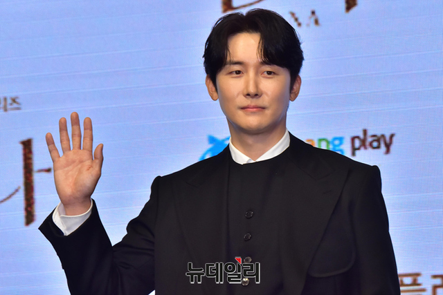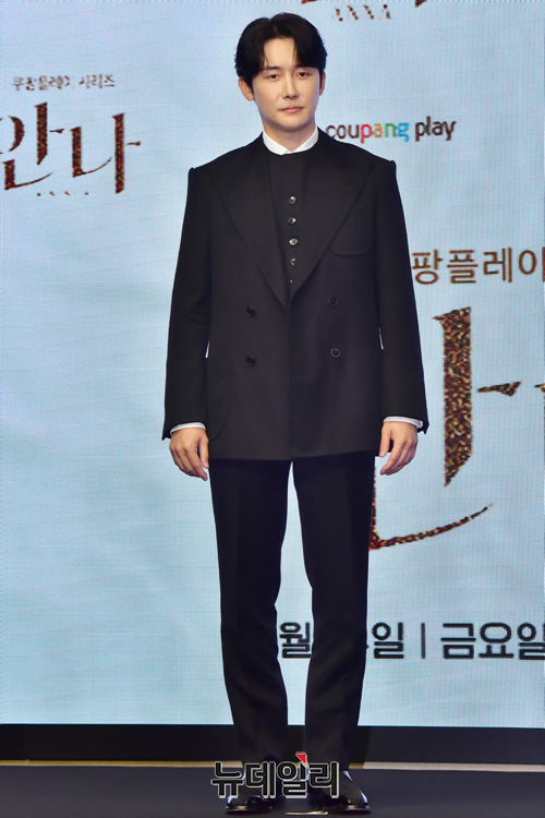 배우 김준한이 21일 오후 서울 여의도 콘래드 서울 호텔에서 열린 쿠팡플레이 시리즈 '안나(감독 이주영)' 제작발표회에서 포즈를 취하고 있다.