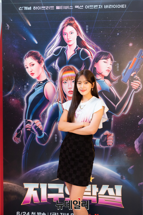 걸그룹 아이브 안유진이 20일 오후 온라인으로 열린 tvN 신규 예능 '뿅뿅 지구오락실(연출 나영석, 박현용)' 제작발표회에서 포즈를 취하고 있다.