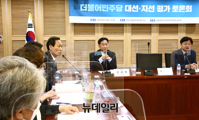 [포토] 대선·지선 평가 토론회 참석한 우상호 비대위원장