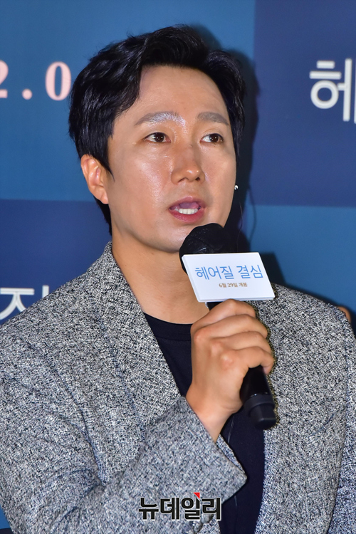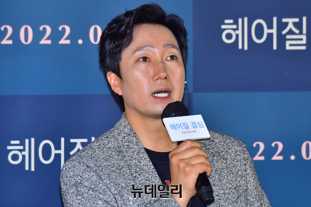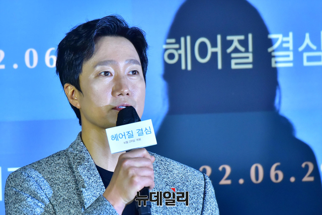 배우 박해일이 21일 오후 서울 CGV 용산아이파크몰에서 열린 영화 '헤어질 결심(감독 박찬욱)' 시사회에서 취재진의 질문에 답하고 있다.