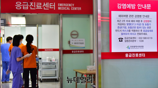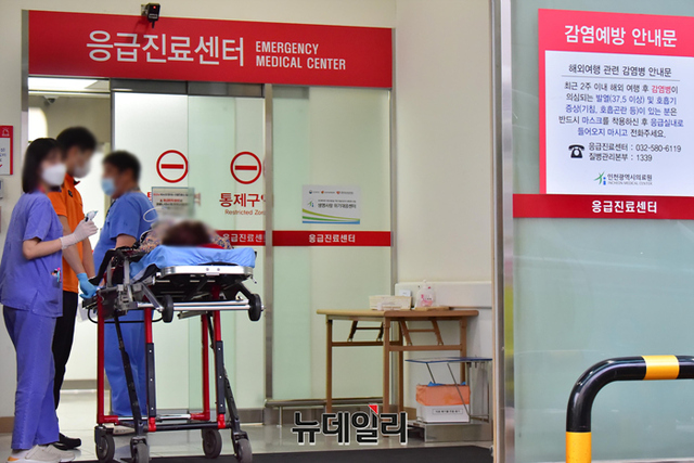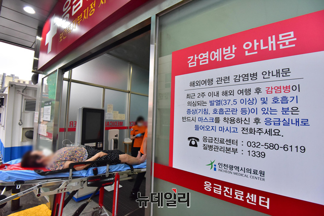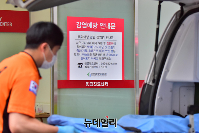 국내에서 원숭이두창 의심환자 2명 중 1명이 최종 양성판정을 받은 22일 오후 인천 동구 인천의료원 응급실로 응급환자가 이송되고 있다.질병관리청은 "해당 환자는 독일에서 6월 21일 오후 4시경 귀국했다"며 "입국 전 6월 18일에 두통 증상을 시작으로 입국 당시에는 미열, 인후통, 무력증(허약감), 피로 등 전신증상 및 피부병변을 보였다"고 발표했다.이어 "인천공항 입국 후 본인이 직접 신고해 의사환자로 분류돼 현재 인천의료원(국가지정 입원치료병상)으로 이송 후 치료 중이다"고 밝혔다.윤석열 대통령은 원숭이두창 환자 발생과 관련해 방역 당국에 항바이러스제를 조속히 도입할 것을 주문했다. (인천=강민석 기자)