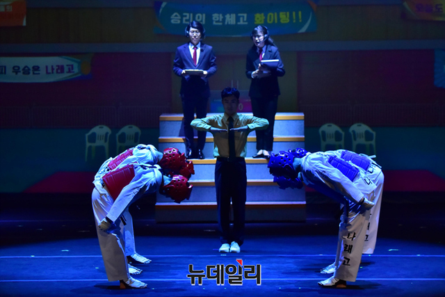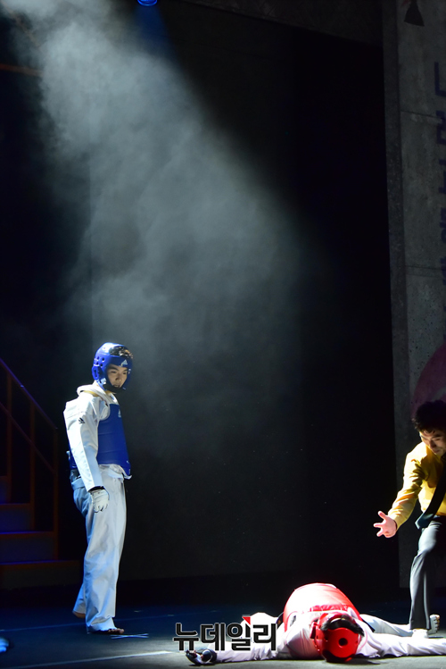 '태권, 날아올라'는 한국체육고등학교를 배경으로 태권도 유망주들의 성장 이야기를 그린 뮤지컬이다. 태권도 국가대표 시범단의 역동적인 퍼포먼스를 더해 풍성한 볼거리를 제공한다. 국립중앙박물관 극장용에서 7월 3일까지 공연.