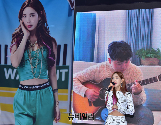 걸그룹 '클레오' 출신 채은정이 23일 오후 서울 영등포구 복지TV스튜디오에서 열린 첫 번째 솔로 앨범 '위후후후' 발매 기념 쇼케이스에서 포즈를 취하고 있다.