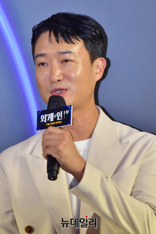 배우 조우진이 23일 오후 서울 강남구 메가박스 코엑스에서 열린 영화 '외계+인(감독 최동훈) 1부' 쇼케이스에 참석해 자리하고 있다.