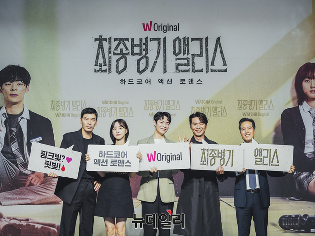 왓챠 오리지널 드라마 '최종병기 앨리스(극본 서성원 이병헌, 연출 서성원)' 출연배우들이 24일 온라인으로 열린 제작발표회에서 포토타임을 갖고 있다.