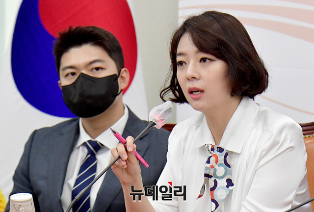 배현진 국민의힘 최고위원이 27일 오전 국회에서 열린 최고위원회의에 참석해 모두발언을 하고 있다.