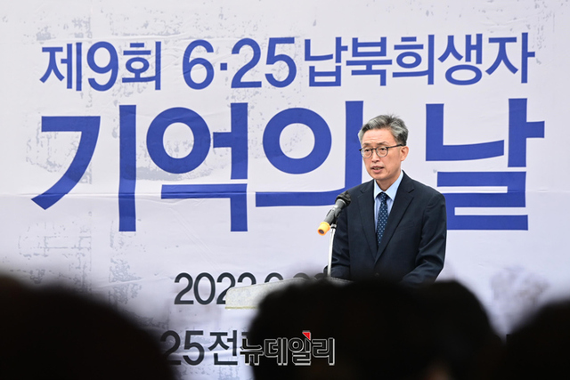 박상헌 국립6·25납북자기념관 관장이 28일 오전 경기 파주시 임진각 국립6·25전쟁납북자기념관에서 열린 6·25납북희생자 기억의날 행사에서 운영관리 경과보고를 하고 있다. (경기 파주=강민석 기자)