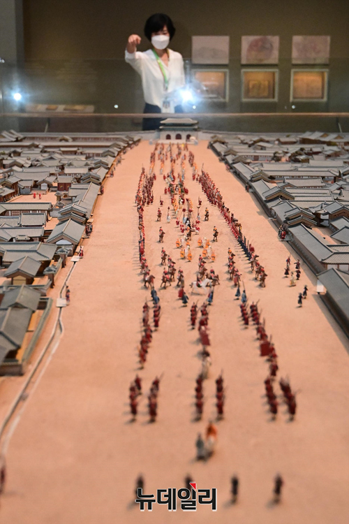 서울역사박물관 개관 20주년 상설전시 재개관을 앞둔 29일 오전 서울 종로구 서울역사박물관에서 학예사가 전시물을 설명하고 있다.서울역사박물관은 "2012년 개관 10주년 때 전면 개편한 이후 10년 만에 다시 개편을 했다"며 "축적된 박물관의 전시, 유물 수집, 조사, 보존 사업 등의 성과를 담아 '서울 사람 이야기'를 보여주고자 마련을 했다"고 말했다. 이어 "노후 전시시설도 새로 교체해 관람환경의 안전성도 더했다"고 밝혔다.상설전시실은 △조선시대의 서울 △개항과 대한제국기의 서울 △일제강점기의 서울 △대한민국 수도 서울 △도시모형영상관 총 5구역으로 마련돼 있다. 30일 재개관.
