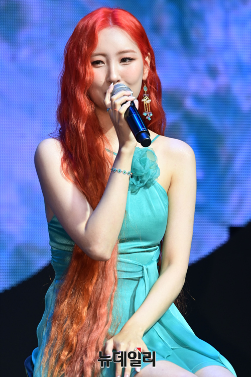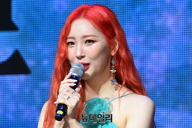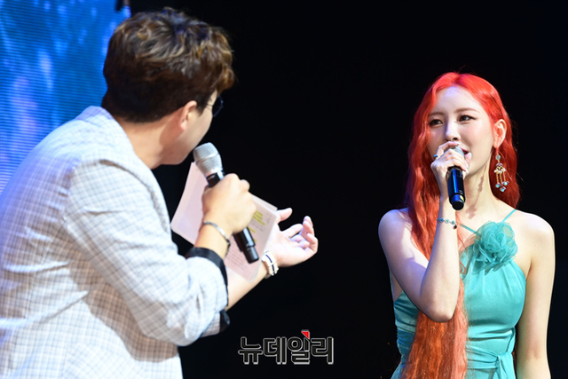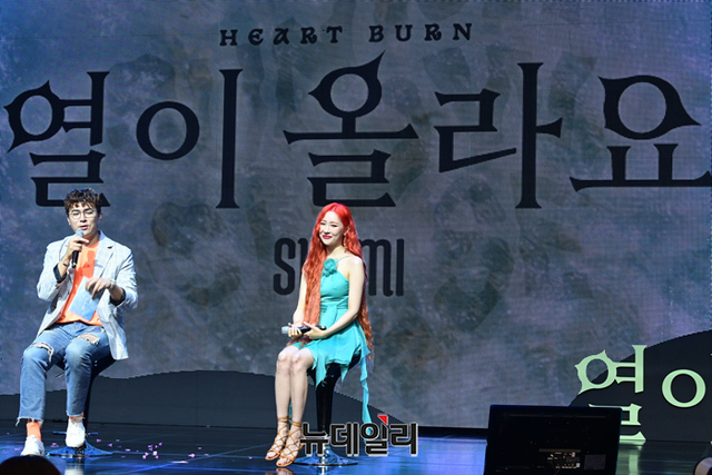 가수 선미가 29일 오후 서울 마포구 신한pLay 스퀘어에서 열린 디지털 싱글앨범 '열이올라요' 발매기념 쇼케이스에서 인사말을 하고 있다.