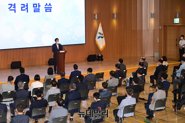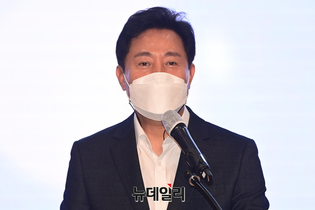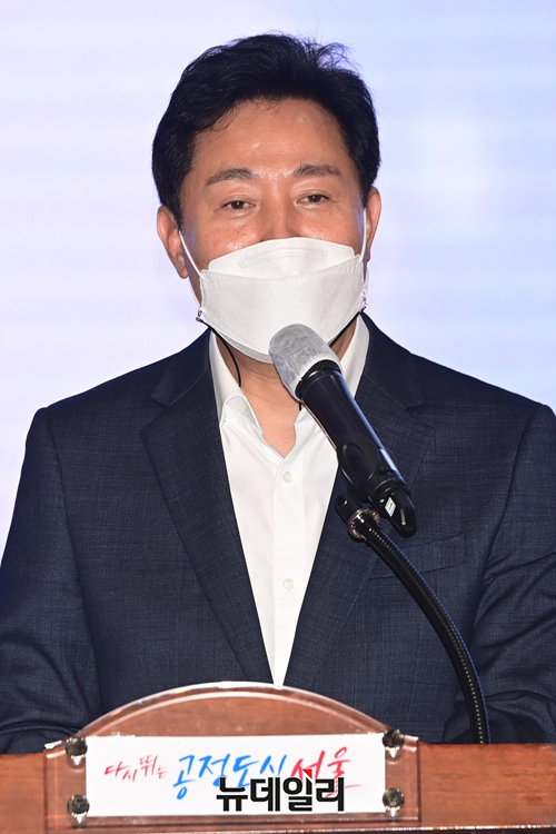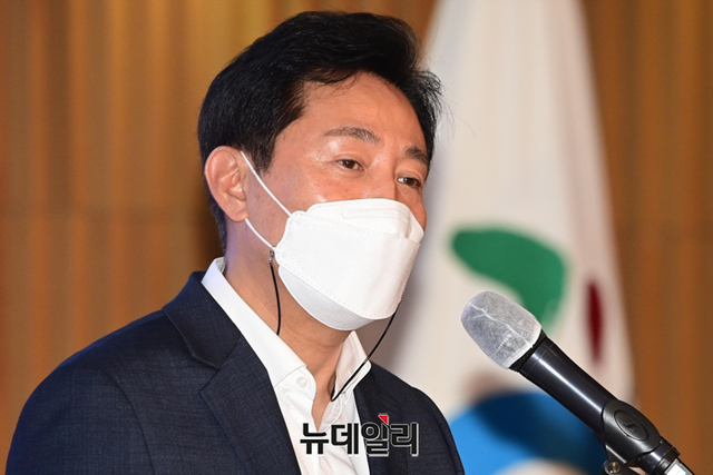 오세훈 서울시장이 29일 오후 서울 중구 서울시청에서 열린 행정1·2부시장 이임식에서 격려사를 하고 있다.