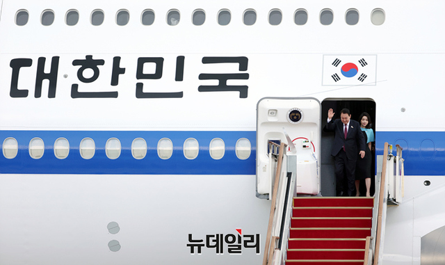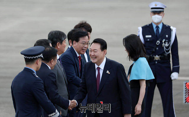 [포토] 나토 정상회의 마치고 귀국한 윤석열 대통령
