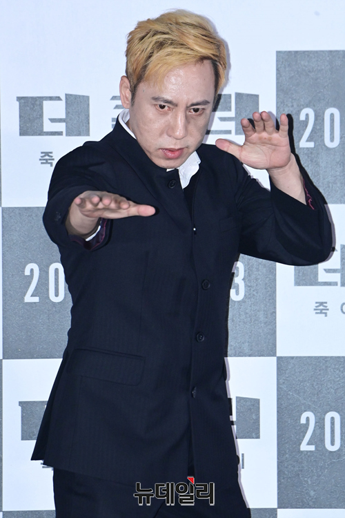 배우 브루스 칸이 4일 오후 서울 CGV 용산아이파크몰에서 열린 영화 '더 킬러:죽어도 되는 아이(감독 최재훈)' 언론배급시사회 및 기자간담회에서 포즈를 취하고 있다.