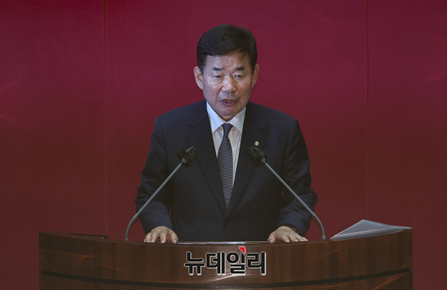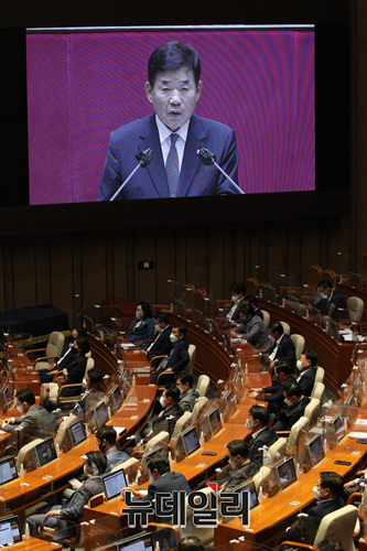 후반기 국회의장으로 선출된 김진표 더불어민주당 의원이 4일 오후 국회에서 열린 본회의에서 당선 인사를 하고 있다. (사진=공동취재단)