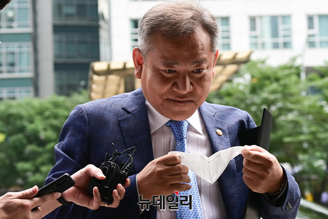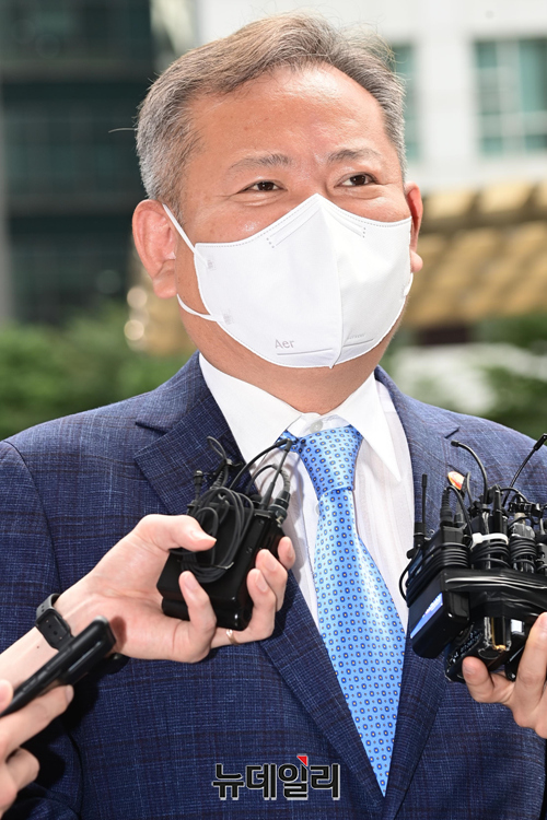 [포토] 경찰위원회 소집, 취재진 질문 답하는 이상민 행안부 장관