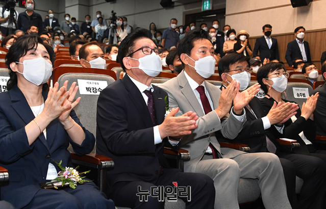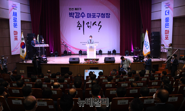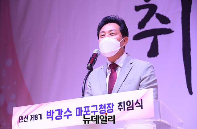오세훈 서울시장이 5일 오후 서울 마포구청 대강당에서 열린 박강수 마포구청장 취임식에서 인사말을 하고 있다. (사진=서울시)