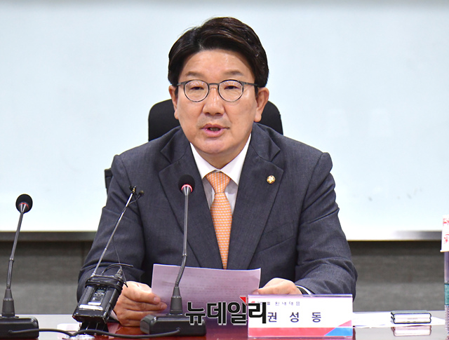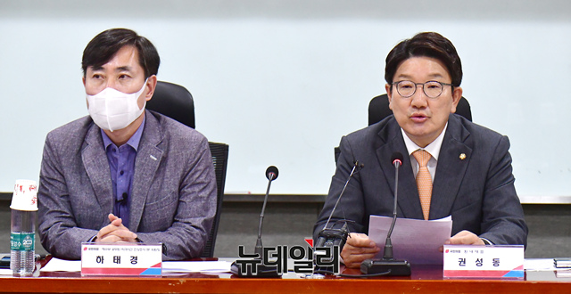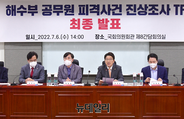 권성동 국민의힘 원내대표가 6일 오후 국회 의원회관에서 열린 해양수산부 공무원 피격사건 진상조사 태스크포스 최종발표에 앞서 인사말을 하고 있다.