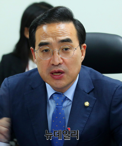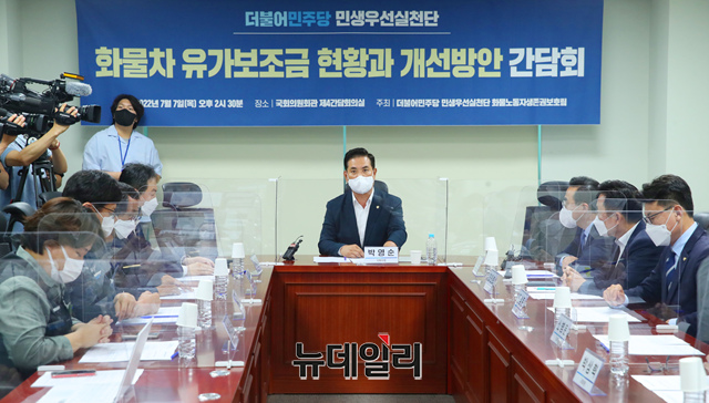 박홍근 더불어민주당 원내대표가 7일 오후 국회 의원회관에서 열린 화물차 유가보조금 제도 현황 및 개선방안 간담회에서 발언을 하고 있다.