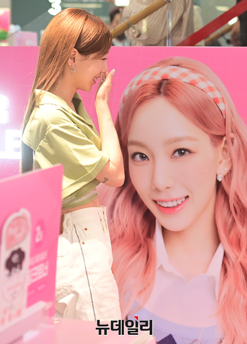 소녀시대 태연이 8일 오후 서울 강남구 올리브영 강남 플래그십 스토어에서 열린 동성제약 셀프 헤어스타일링 브랜드 '이지엔(eZn)' 초청 팬사인회에서 포즈를 취하고 있다.